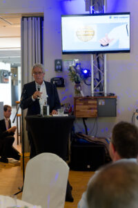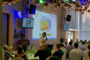 Mit einem Sektempfang und kleinen Häppchen startete der Abend genussvoll. Die elegant in Weiß sowie den Firmenfarben Blau und Grün gedeckten Tische im Restaurant sorgten für festliches Ambiente. Für die liebevolle Organisation danken wir herzlich Susanne Menner, Assistenz der Geschäftsleitung – ihr Einsatz war großartig. Nach der offiziellen Begrüßung wurde zum Essen gebeten. Bei perfektem Sommerwetter lockten die Grillstationen und Salattheken im Außenbereich mit frisch zubereiteten Speisen: saftige Steaks, herzhafte Burger, knackiges Gemüse und eine Vielfalt an Beilagen sorgten für kulinarischen Genuss.
