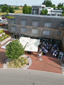 Schon das Ankommen war ein echtes Erlebnis: Aus allen Unternehmensstandorten reisten die Kolleginnen und Kollegen an und füllten die Hotelterrasse schnell mit Leben. Herzliches Wiedersehen, neugieriges Kennenlernen und fröhliches Stimmengewirr bestimmten den Auftakt. Dank der Namensschilder war die Zuordnung leicht – und so hörte man überall: „Ach, du bist das!“ oder „Ah, ihr seid aus dem Standort XY!“. Lachen und lebhafter Austausch begleiteten die ersten Minuten. Ein besonderes Highlight: Auch viele ehemalige Mitarbeitende sowie Kolleginnen aus der Elternzeit waren mit dabei – ein großes Wiedersehen, das uns alle besonders gefreut hat.