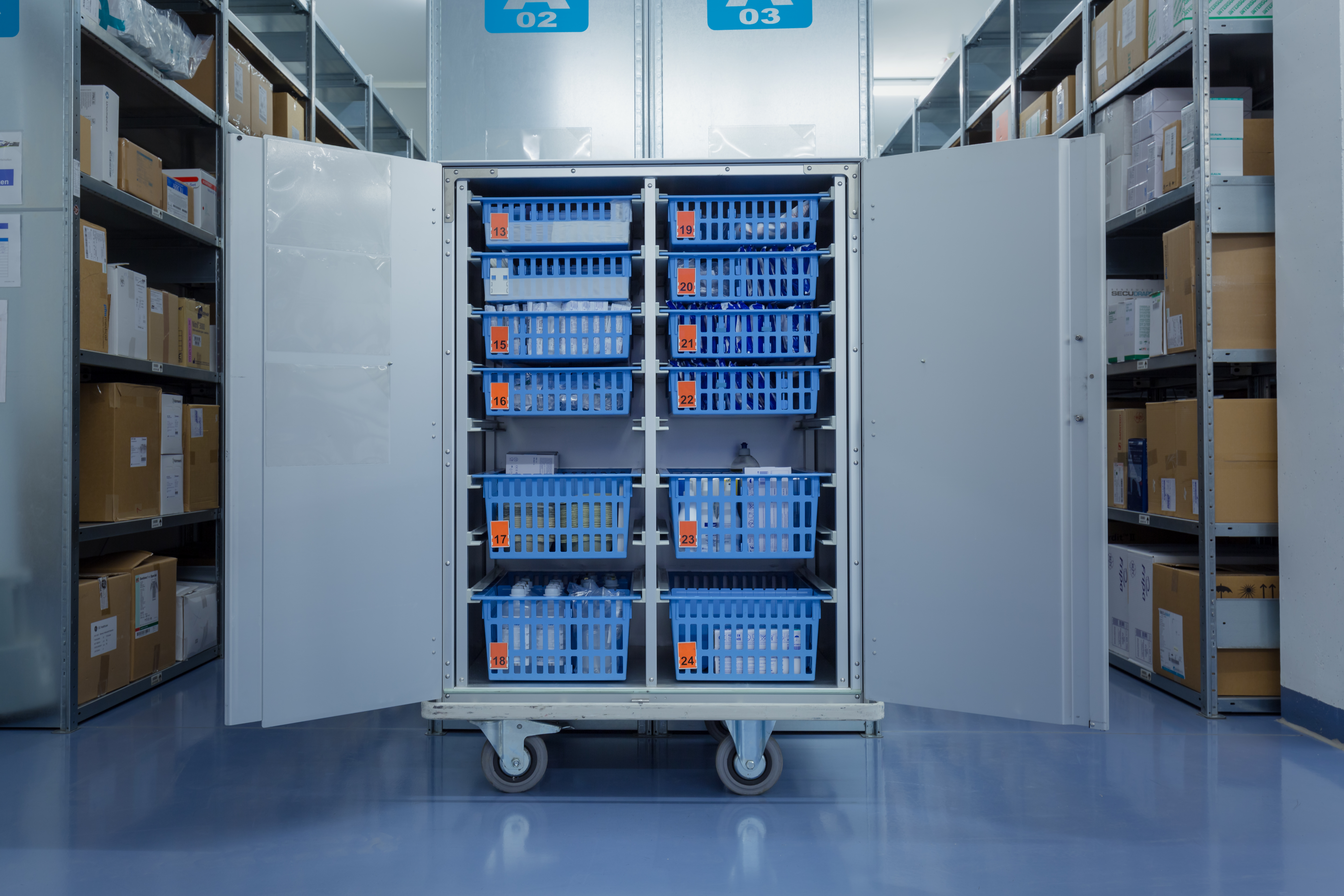 Auf einer Logistikfläche von mehr als 30.000 m2 werden täglich mehr als 7.500 Picks und jährlich mehr als 250.000 Aufträge bearbeitet. Um die pünktliche Versorgung zu gewährleisten bauen wir dabei auch die firmeneigene Fahrzeugflotte aus.